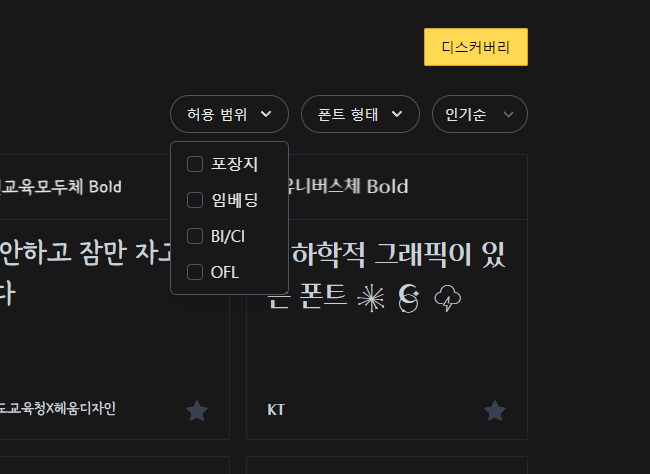 상단에 카테고리 중 모든 폰트를 눌러보시면 다양한 폰트를 취향 또는 니즈에 맞게 찾아볼 수 있습니다.