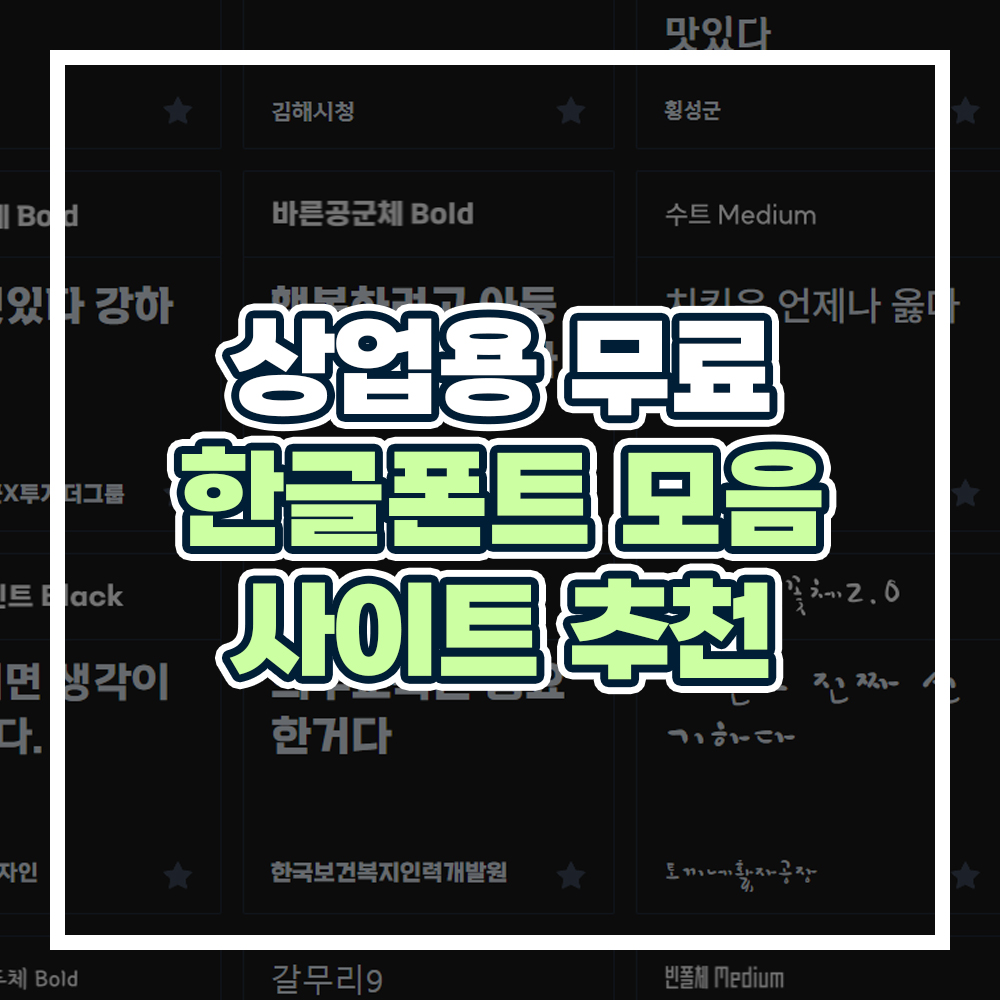 서론을 떠나, 이제 아무나, 누구든지 사용할 수 있는 상업용 무료 한글 폰트 모음 사이트를 소개해드리도록 하겠습니다.