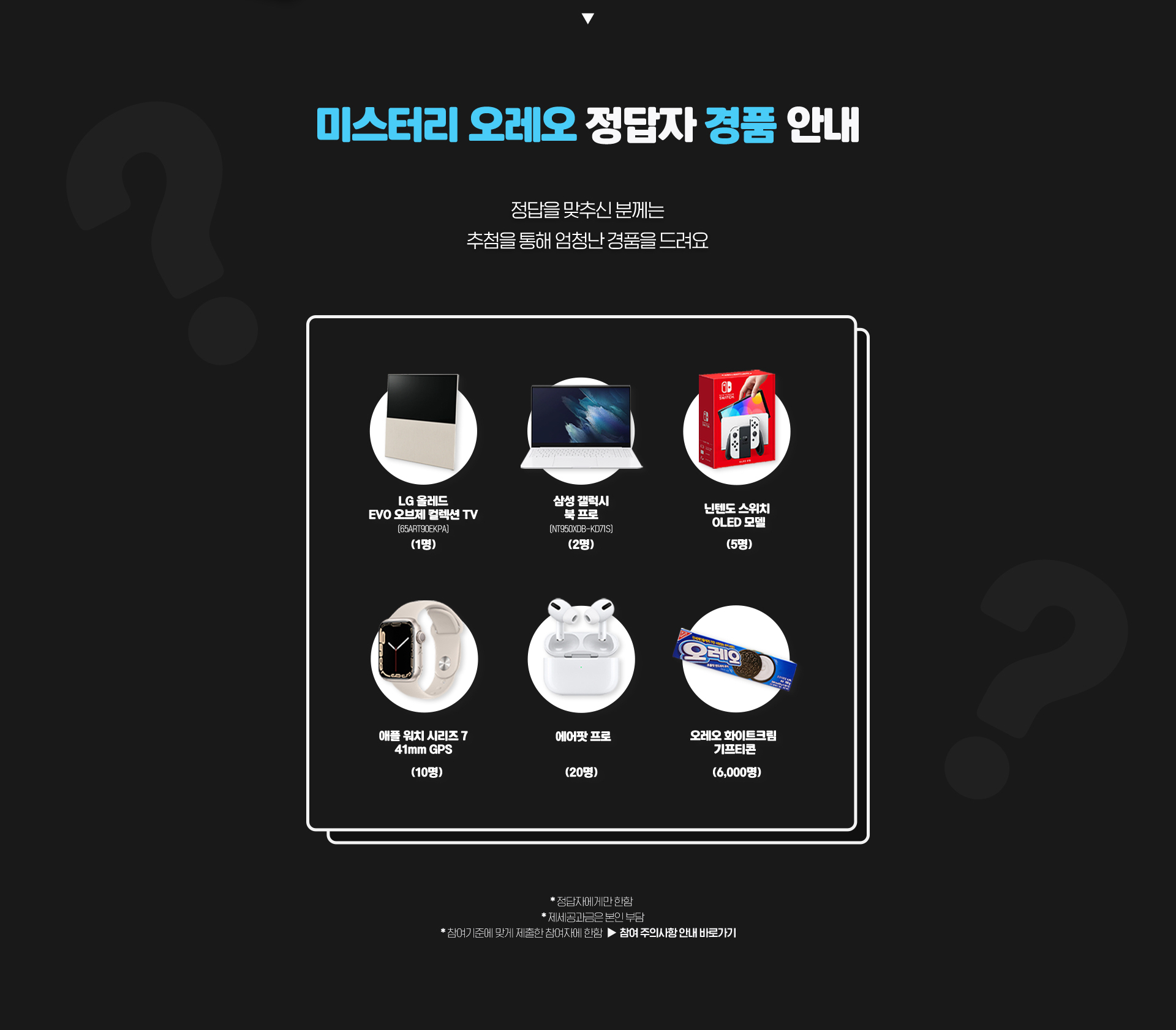 올레드 오브제 TV부터 오레오 기프티콘까지, 추첨을 통해 다양한 경품을 나눠준다고 하네요.